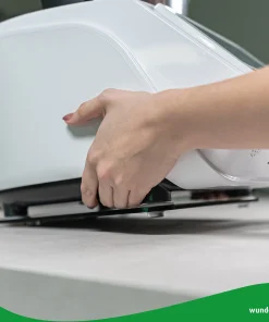 Selbst Hindernisse wie die Kochfeldumrandung sind für den EasySlider kein Problem. Problemlos überwindet er jede Unebenheit auf der Arbeitsplatte. Hierzu greift man seitlich an den Monsieur Cuisine und kann so das Gleitbrett mitsamt der Küchenmaschine spielend leicht bewegen.