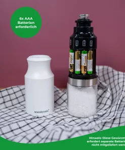 - Leicht nachzufüllende Gewürzbehälter mit großzügigem Fassungsvermögen für bis zu 210 g Salz oder 90 g Pfeffer