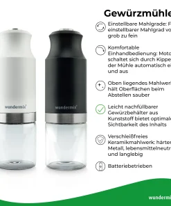 Elektrische Salz & Pfeffermühlen mit stufenlos einstellbarem Mahlwerk