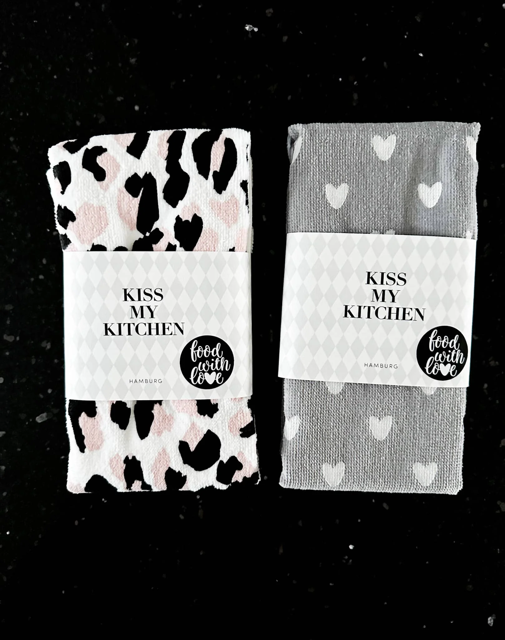 Neben diesen flauschigen Handtüchern im Herz und Leo Design findet ihr in unserem Shop zudem die super-praktischen Schwammtücher, Geschirrtücher sowie Kitchen-Heroes von Kiss My Kitchen by food with love.