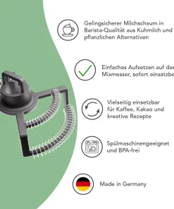 Milch aufschäumen mit dem Schmetterling im Thermomix? Wir finden: Das geht leichter! Mit dem Milkimizer holst Du Dir Café-Feeling direkt nach Hause. In wenigen Minuten zaubert der Aufsatz für den Thermomix cremigen Milchschaum für Latte Macchiato, Cappuccino oder heiße Schokolade. Ob morgens zum Wachwerden oder nachmittags als Genussmoment: Dein Thermomix verwandelt sich in Deinen persönlichen Barista. Der Milkimizer ist spülmaschinengeeignet und made in Germany.