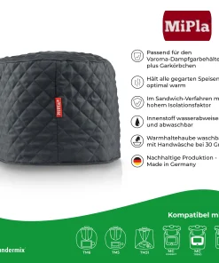 Das Warmhalten von Speisen im Varoma-Behälter und dem Gareinsatz für den Thermomix ist ab jetzt kein Problem mehr. Denn die neue MiPla® Warmhaltehaube sorgt dank seiner guten Isolierung dafür, dass das fertige Essen darunter lange warm bleibt.