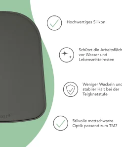 Besonders das Teigkneten mit dem TM7 kann zur wackeligen Angelegenheit werden! Die mixle Anti-Rutsch-Unterlage schützt nicht nur Deine Arbeitsfläche vor Kratzern, sondern sorgt für einen sicheren Stand Deines Thermomix oder anderer Küchenmaschinen. Hochwertiges, rutschfestes Silikon sorgt für festen Halt, während das elegante Design perfekt zur mattschwarzen Optik des TM7 passt.