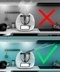 Beim Kochen mit dem Thermomix treten Dämpfe aus dem Mixtopfdeckel aus, die zum Problem werden, wenn der Thermomix unter Hängeschränken platziert ist.