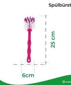 Die Nylonborsten sind robust und dennoch schonend und vor allem: Sie sind leicht zu reinigen! Um die praktische Spülbürste zu reinigen, geben Sie sie einfach in die Spülmaschine. Nach dem Gebrauch kann der kleine Küchenhelfer platzsparend aufgehängt werden und ist dank des Lochs im Griff immer in Reichweite.