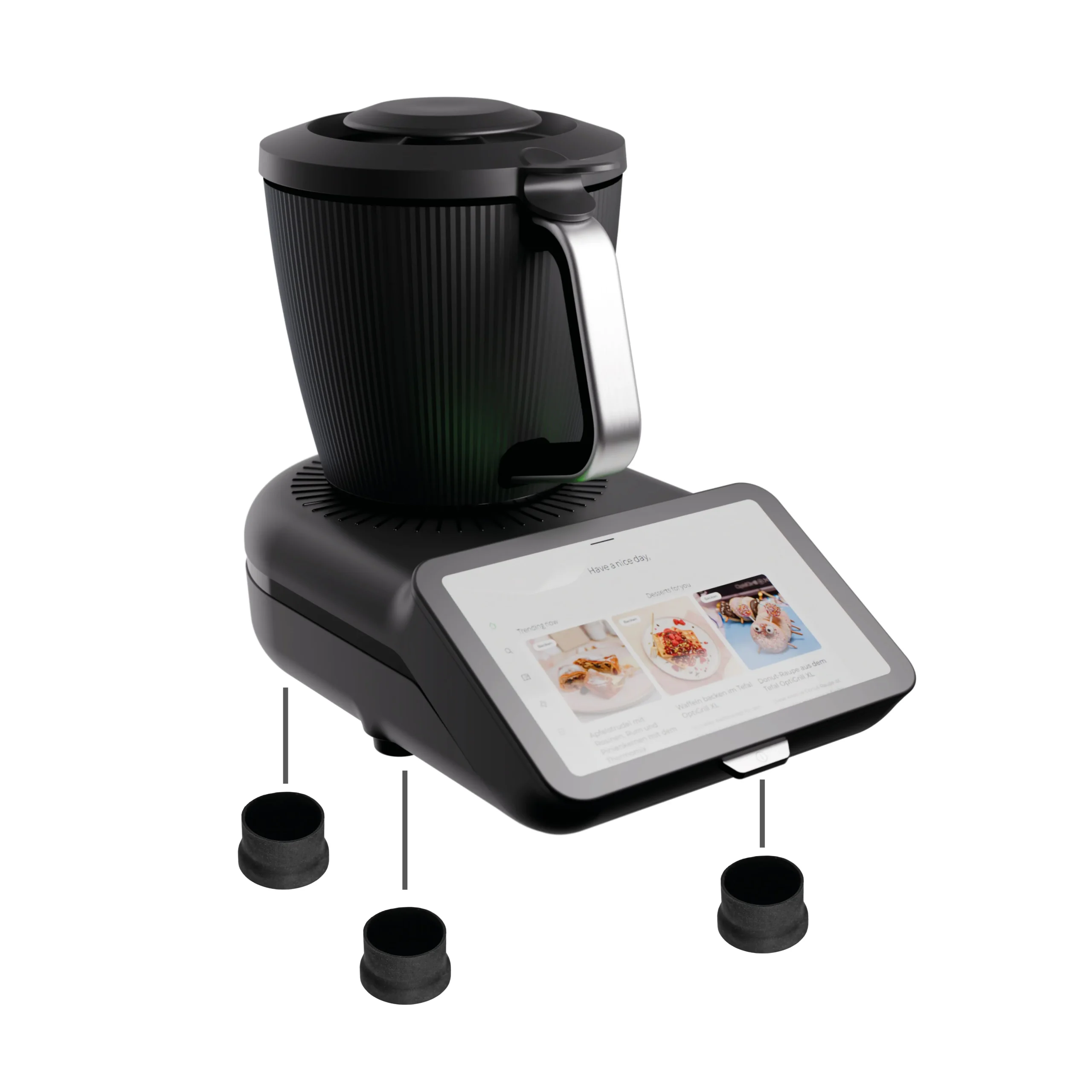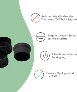 Dein TM7 wandert beim Kneten von schweren Teigen? Mit den Silikonfüßen für Deinen Thermomix TM7 bleibt das Gerät auch bei schweren Teigen sicher auf der Arbeitsfläche stehen. Die rutschhemmende Oberfläche sorgt für festen Halt und schützt gleichzeitig Deine Arbeitsplatte. Die Silikonfüße sind einfach anzubringen, optisch dezent und beeinträchtigen selbstverständlich nicht die Waage Deines TM7! Eine praktische Lösung!