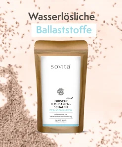 Bei sovita Indischen Flohsamenschalen handelt es sich um ein reines Naturprodukt mit einem besonders hohen Ballaststoffgehalt von 88 %. Flohsamenschalen stellen eine besonders gut bekömmliche Form von Ballaststoffen dar, die sich positiv auf die Gesundheit auswirken können und kaum Nebenwirkungen zeigen. Sie bereichern eine vollwertige Ernährung, werden oft als Heilpflanze eingesetzt und können bei verschiedenen Beschwerden des Magen-Darm-Traktes helfen. Aufgrund ihrer sanft abführenden Wirkung eignen sich Indische Flohsamenschalen so perfekt bei Verstopfung.