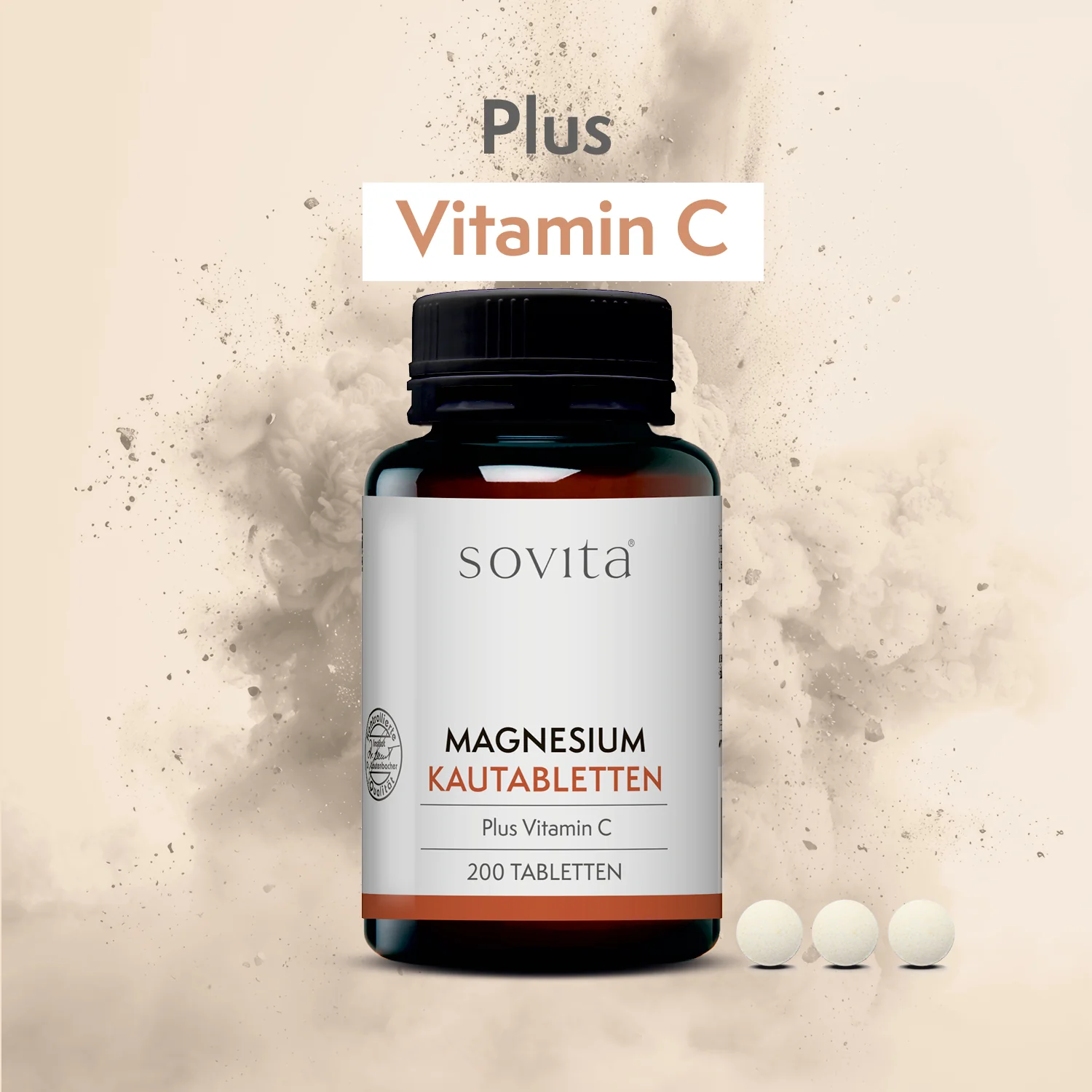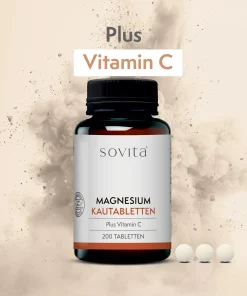 Die sovita Magnesium Kautabletten bieten eine praktische und leckere Möglichkeit, den täglichen Magnesiumbedarf zu decken. Diese Kautabletten sind mit Vitamin C angereichert, um die normale Funktion der Muskeln zu unterstützen und Krämpfen vorzubeugen. Sie liefern Magnesium und Vitamin C in einer fein abgestimmten und geschmacklich angenehmen Rezeptur und sind als Nahrungsergänzungsmittel ideal, weil sie auch unterwegs einfach ohne Wasser verzehrt werden können.