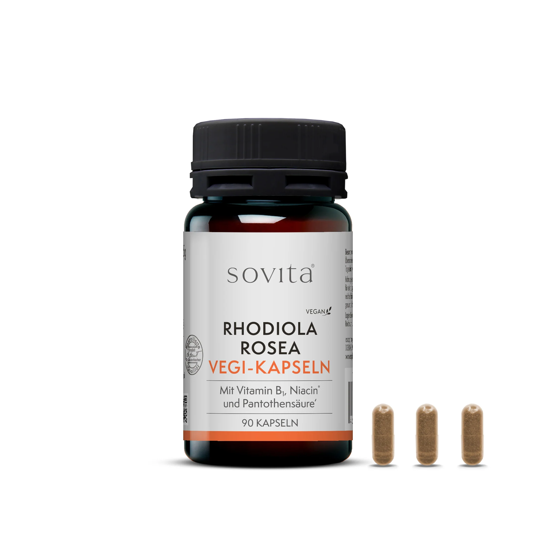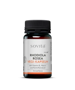 Die sovita Rhodiola Rosea Vegi-Kapseln wurden entwickelt, um Wohlbefinden und Stressresistenz zu erhöhen. Der enthaltene Wurzel-Extrakt weist einen Gehalt von mindestens 3 % Rosavinen auf. Dies sind wertvolle sekundäre Pflanzenstoffe der Wurzel. Zusätzlich enthalten die Kapseln Vitamin B1, Niacin und Pantothensäure. Vitamin B1 und Niacin tragen zur normalen psychischen Funktion bei. Durch die Pantothensäure wird die mentale Kraft unterstützt, denn dieses Vitamin spielt eine Rolle bei der normalen geistigen Leistung und trägt zur Verringerung von Müdigkeit bei.