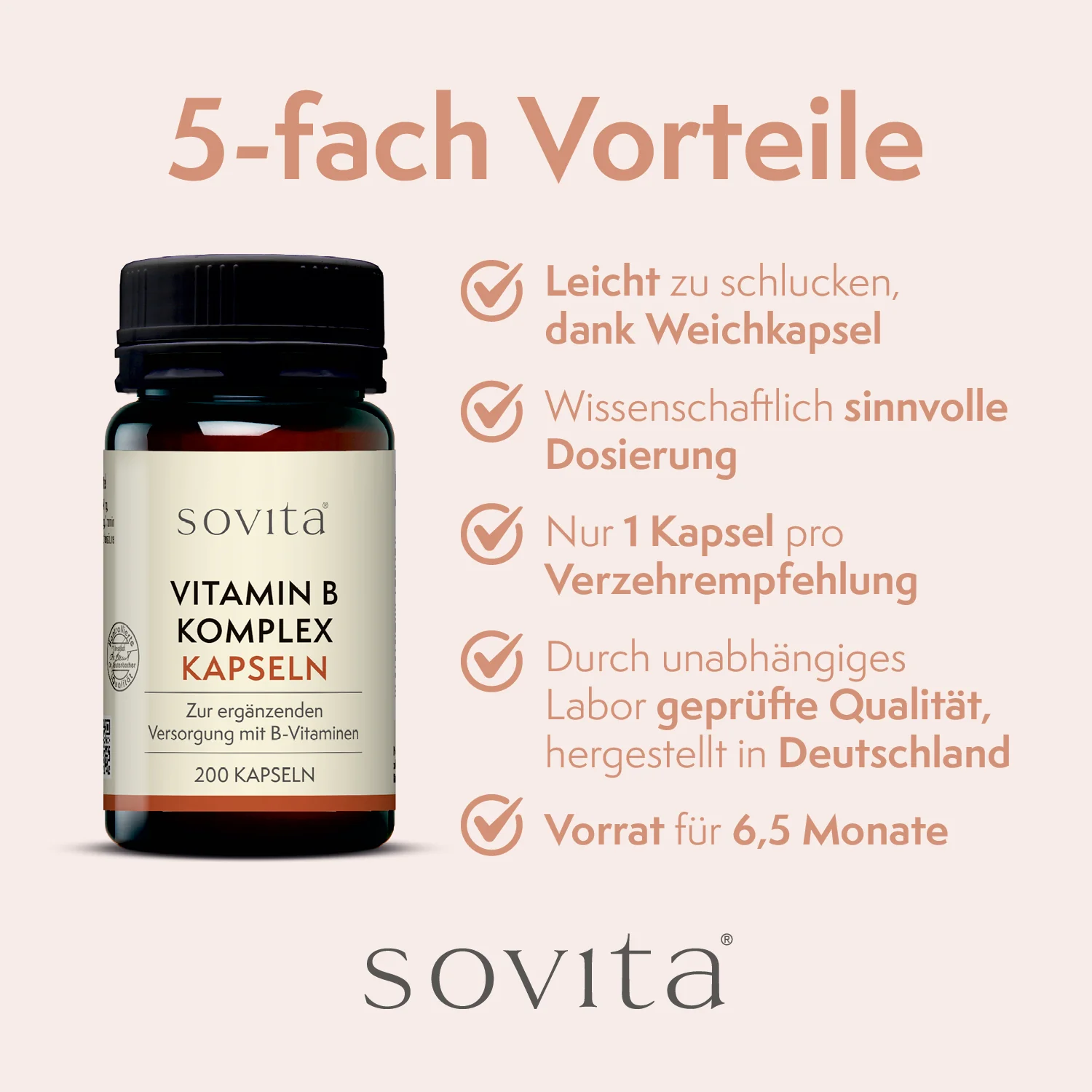 Die sovita Vitamin B Komplex Kapseln liefern Ihnen folgende Vorteile: