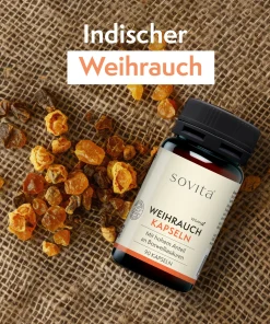 Die sovita Weihrauch Kapseln bieten Ihnen die gesundheitlichen Vorteile des traditionellen Weihrauchs in einer praktischen Kapselform. Weihrauch, bekannt für seine entzündungshemmenden und schmerzlindernden Eigenschaften, wird seit Jahrhunderten in der Naturheilkunde verwendet. Diese Kapseln sind ideal für alle, die ihren Bewegunsapparat und ihr allgemeines Wohlbefinden unterstützen möchten.