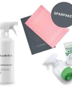 Dank dem Reinigungssparset bestehend aus den food with love Mikrofasertüchern, dem food with love Glanzreiniger und der WunderClean Reinigungspaste mit passender Sprühflasche von Wundermix seid ihr perfekt ausgestattet.