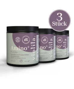 violila Amino⁺ Pulver liefert alle neun essenziellen Aminosäuren in optimaler Kombination: Leucin, Isoleucin, Valin (als BCAAs), sowie Lysin, Methionin, Threonin, Phenylalanin, Histidin und Tryptophan. Diese Aminosäuren kann der Körper nicht selbst herstellen – sie müssen regelmäßig über die Ernährung aufgenommen werden.