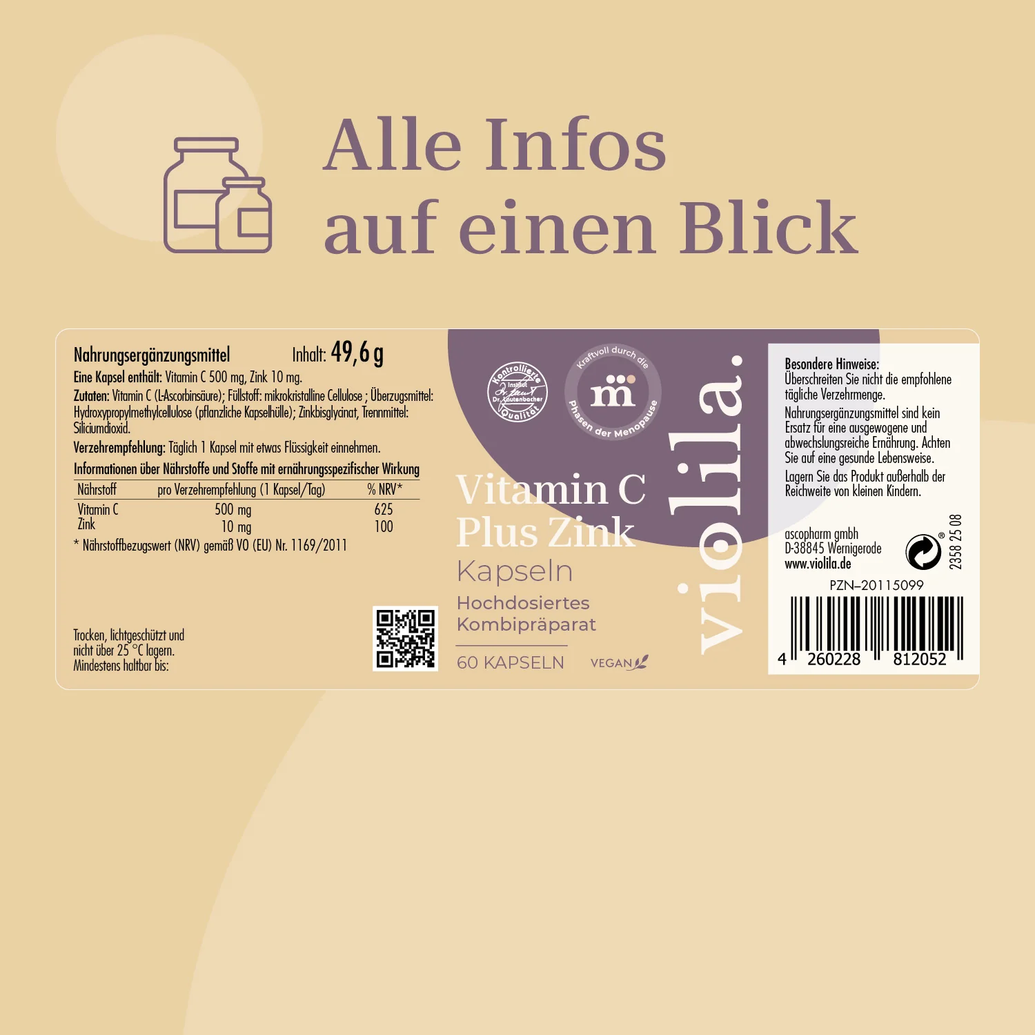 Vitamin C 500 mg, Zink 10 mg.