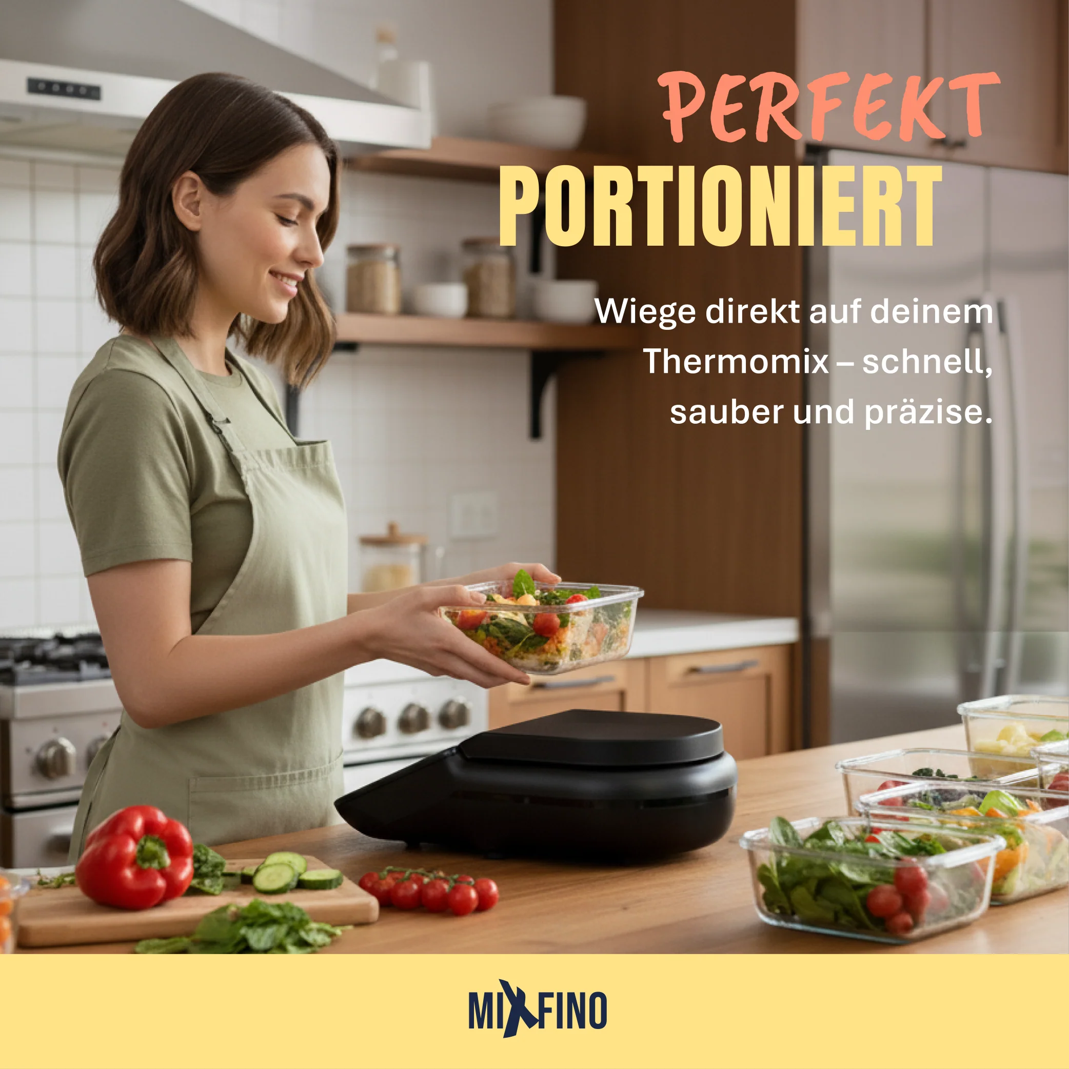 Dein Thermomix TM7 kann fast alles – aber eine einfache Schüssel direkt abwiegen? Bisher unmöglich. Die MixFino WiegeBase ist die geniale Lösung, die deinen TM7 in eine vollwertige Plattformwaage verwandelt. Wiege Zutaten grammgenau in jedem beliebigen Gefäß und schütze gleichzeitig die empfindliche Motorkupplung deines Geräts. Entfessle das volle Potenzial deiner Küchenmaschine!