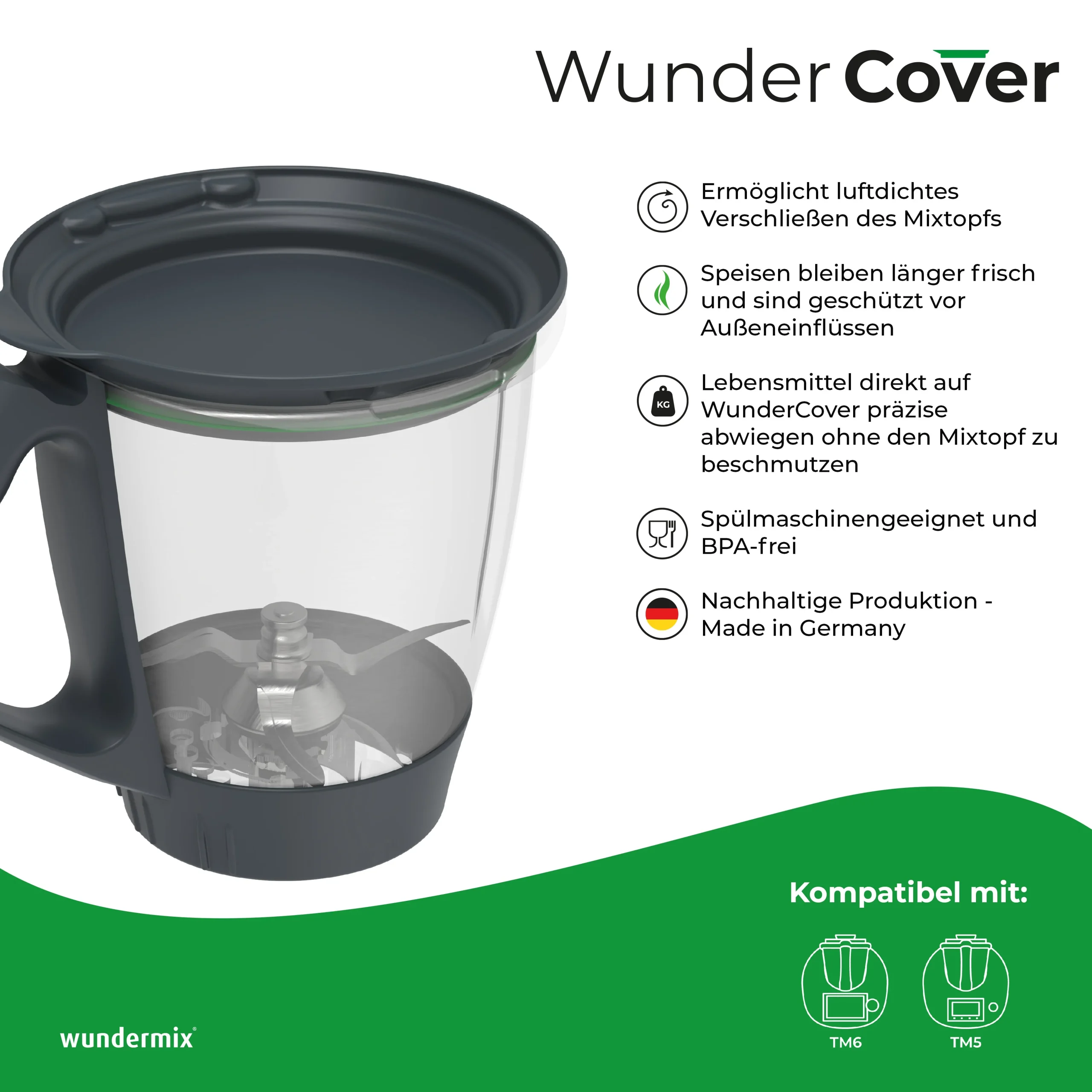 - WunderCover auf den Mixtopf aufsetzen und mit leichtem Druck fixieren.