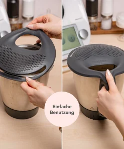 WunderWave wurde von Ingenieuren speziell für den Thermomix Mixtopf entwickelt und passt perfekt. In den Mechanismus der optimalen Fixierung von WunderWave am Mixtopf hat unser Entwicklungsteam einiges an Zeit und Hirnschmalz investiert, denn uns war von Anfang an bewusst, dass wir beim Umgang mit kochend heißem Wasser keinerlei Kompromisse eingehen werden.Das Ergebnis ist eine 100 % zuverlässige Verriegelung am Mixtopf, die sich unter keinen Umständen löst. So wird sauberes und sicheres Entleeren des Mixtopfes gewährleistet.